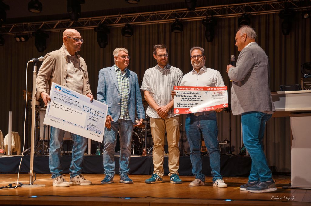 Übergabe der Spendenschecks aus dem Erlös der Veranstaltung an die beiden großen Sportvereine DJK Ochtendung 1920 e.V.und SV 1919 Ochtendung e.V